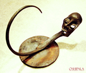 Oshipala, puisiin naamioihin perustuva taontatutkielma 2005 / Oshipala, face collection inspired by wooden masks 2005